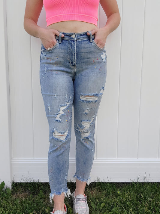 Judy Blue High-Rise Boyfriend Paint Splatter