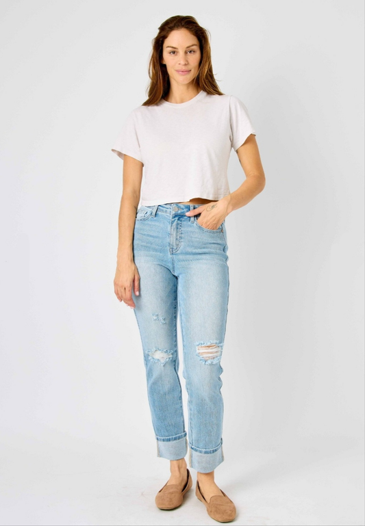 Judy Blue Mid-Rise Cuffed Destroyed Boyfriend
