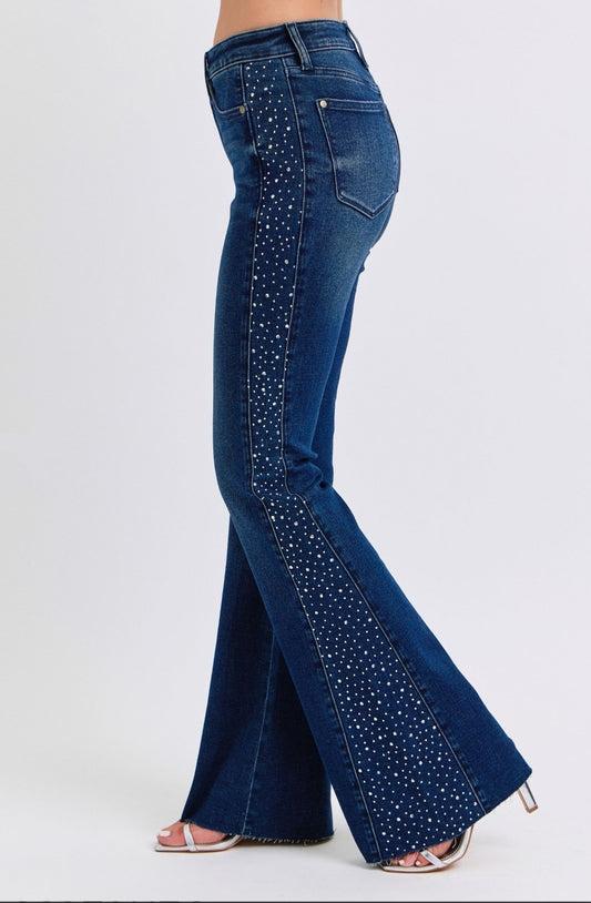 Sold outJudy Blue Mid-Rise Rhinestone Flares