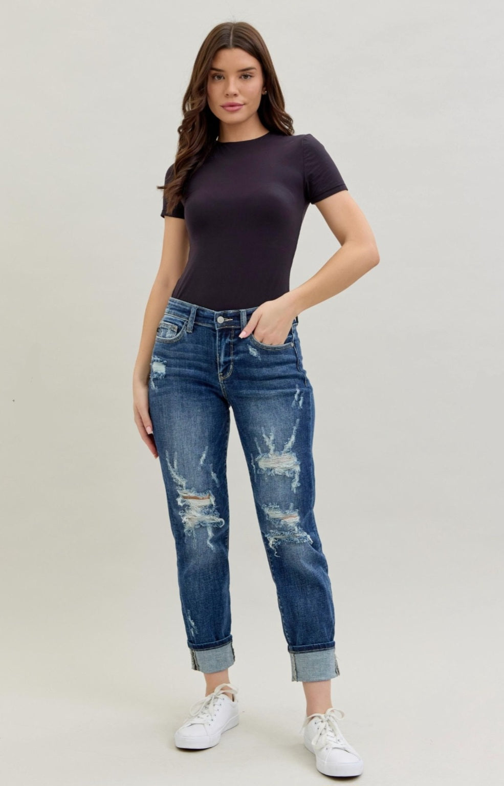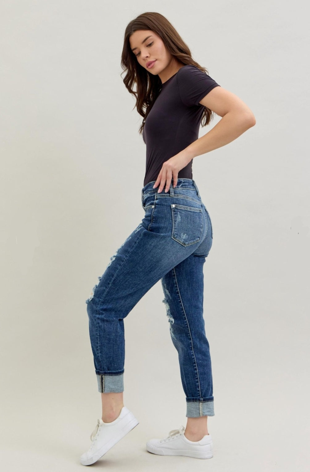 Judy Blue Mid-Rise Cuffed Destroyed Boyfriend