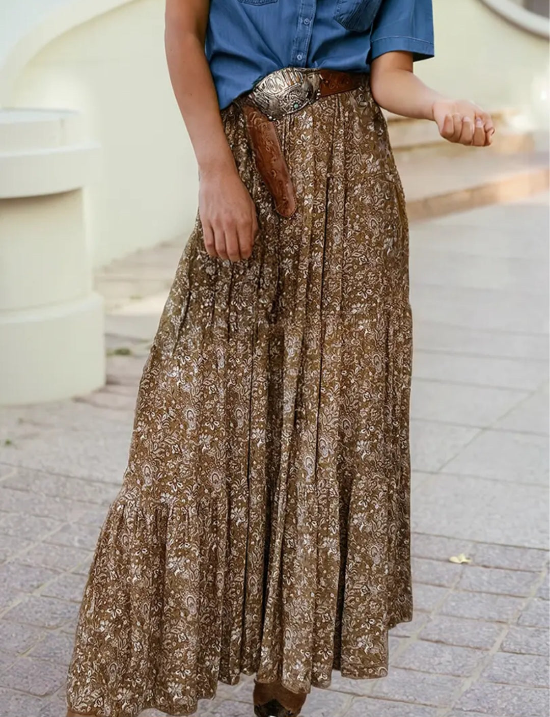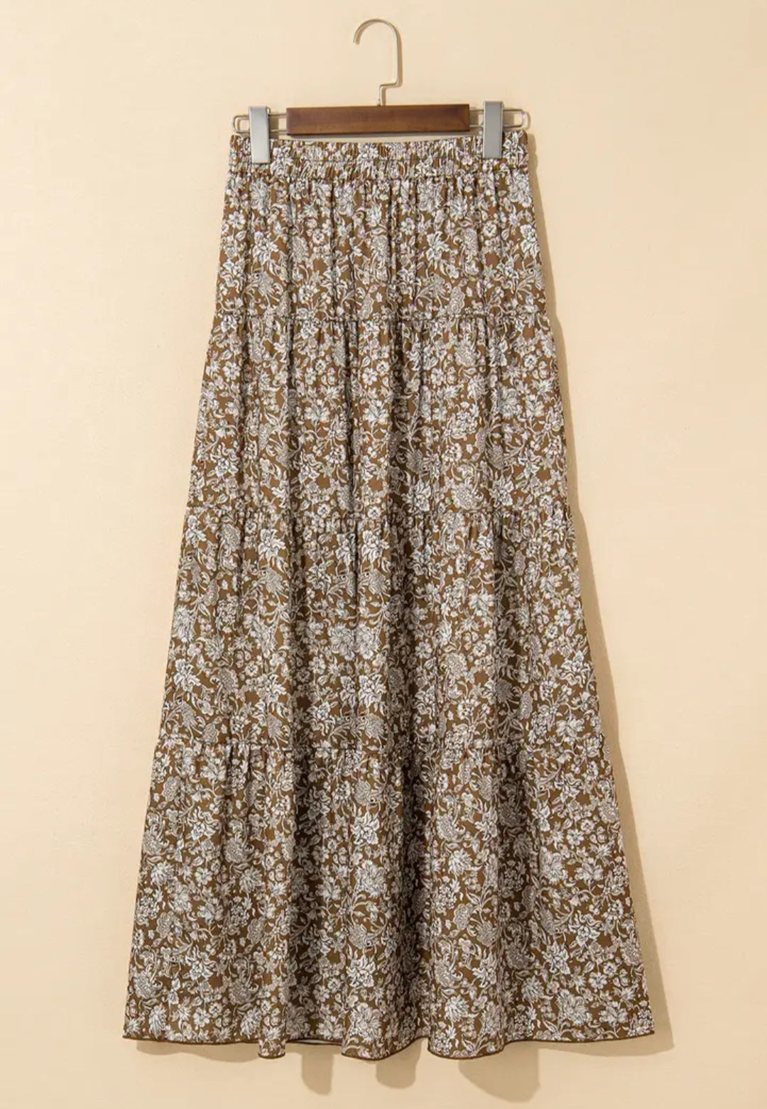 Elevate your wardrobe with this chic and comfortable floral tiered skirt! Pair with a blouse, tee or tank depending on where you're heading! The soft, silk like material is the perfect fabric for those Spring and Summer days!